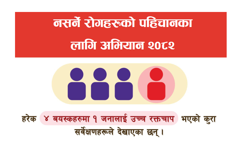 नेपालमा मृत्यु र अपाङ्गगताको मुख्य कारणका रूपमा रहेको नसर्ने रोगको बढ्दो जोखिमलाई ध्यानमा राखी नसर्ने रोगहरूको रोकथाम, प्रारम्भिक पहिचान, र व्यवस्थापनका लागि देशव्यापी अभियान