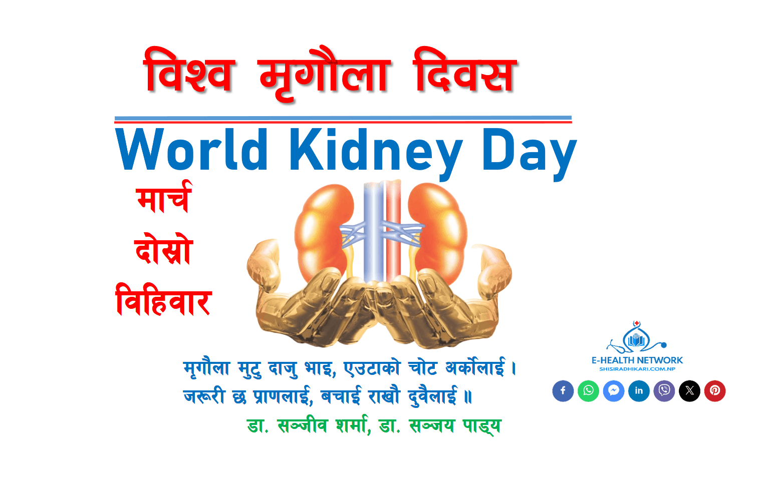 प्रत्येक वर्ष मार्च महिनाको दोस्रो बिहिवार विश्वभर 'विश्व मृगौला दिवस दिवस' मनाइन्छ । प्रत्येक १० जना मध्ये १ जनलाई मृगौला रोग लाग्ने गर्दछ र विश्वभरी नै मृगौला रोगको प्रकोप वढि रहेको परिप्रेक्षमा रोगको पहिचान तथा उपचार र रोकथामका महत्वपुर्ण उपायहरुबारे सबैलाई सचेत गराउने उद्देश्यले मृगौला दिवस मनाउने गरिन्छ ।
