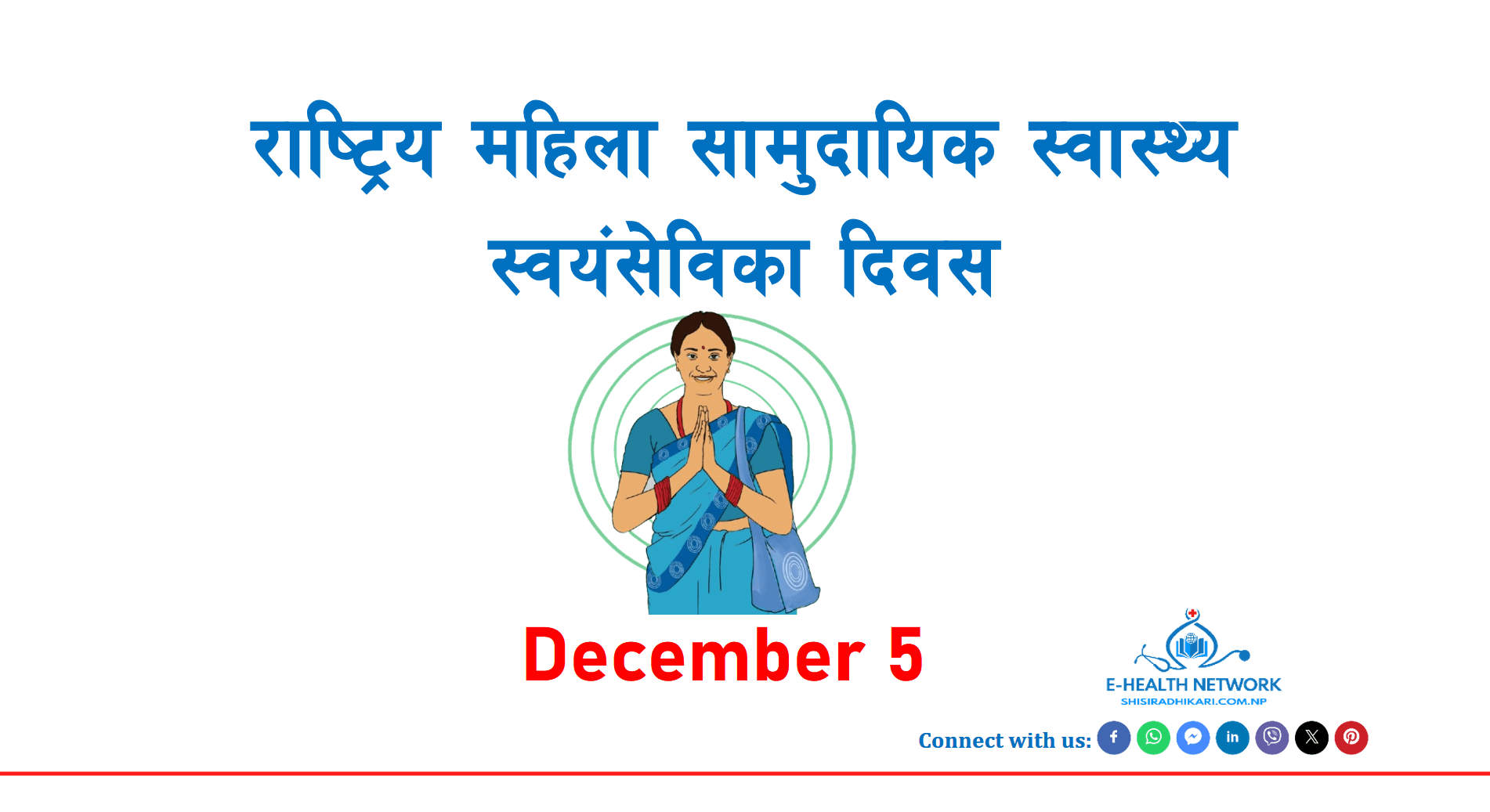 हरेक वर्ष डिसेम्बर ५ का दिन अन्तर्राष्ट्रिय स्वयंसेवक दिवसको अवसर पारेर नेपालमा राष्ट्रिय महिला सामुदायिक स्वास्थ्य स्वयंसेविका दिवस मनाइन्छ । आ.व. २०४५/४६ देखि शुरु भएको राष्ट्रिय महिला सामुदायिक स्वास्थ्य स्वयंसेविका कार्यक्रम अन्तर्गत महिला सामुदायिक स्वास्थ्य स्वयंसेविकाहरुले सामुदायिक स्वास्थ्य क्षेत्रमा पुर्याउदै आएको योगदान अत्यन्तै सराहनीय छ । विशेषतः मातृ, नवजात शिशु तथा बाल स्वास्थ्य, प्रजनन् स्वास्थ्य, परिवार योजना, आदि बिषयमा समुदायमा जनचेतना अभिबृद्धि र सेवा प्रवाह, स्वास्थ्य आमा समूहमा छलफल मार्फत जनस्वास्थ्य सम्बन्धी सूचना तथा सेवाहरुको पहुँचमा वृद्धि गराई मातृ, शिशु तथा बालबालिकामा रोग लाग्ने दर र तिनको मृत्युमा कमी ल्याउन उहाँहरुले पुर्याउनु भएको योगदान अतुलनीय छ ।