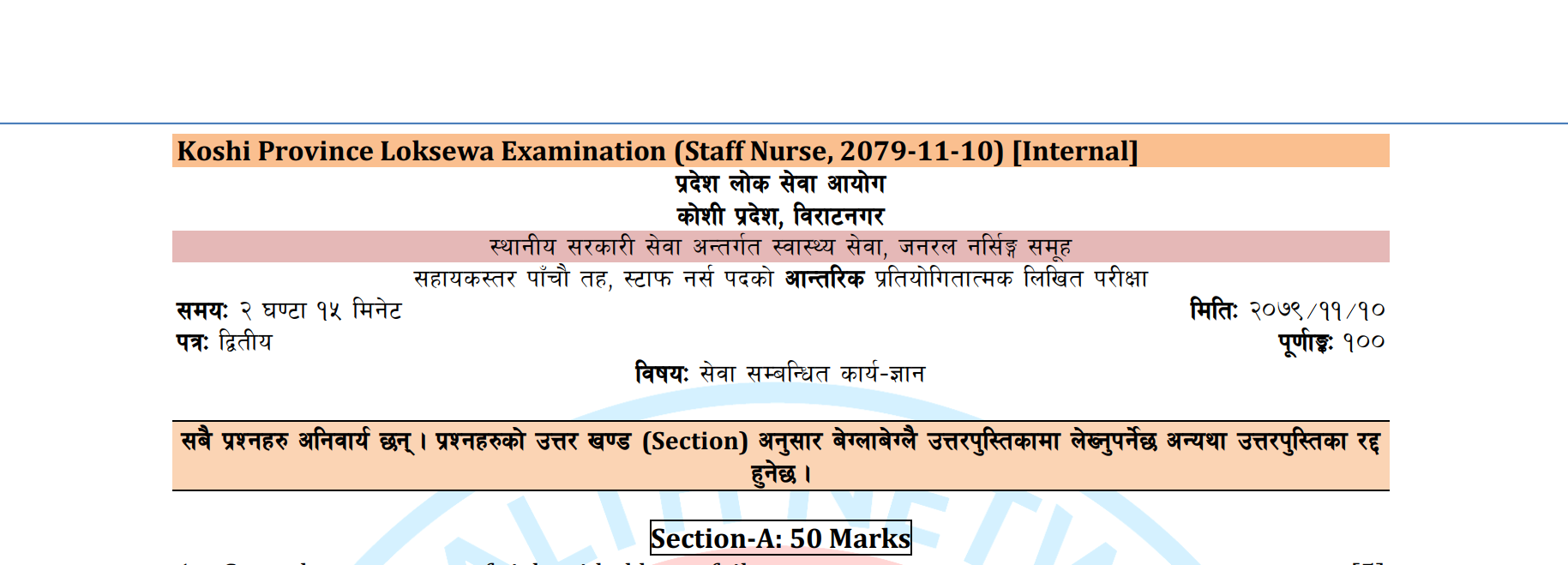 Koshi Province Staff Nurse Loksewa (2079-11-10) - Internal