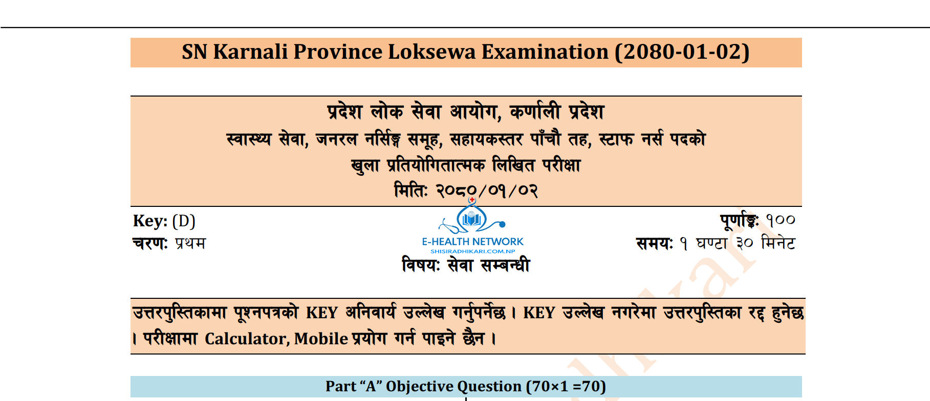 Karnali Province Staff Nurse Loksewa (2080-01-02)