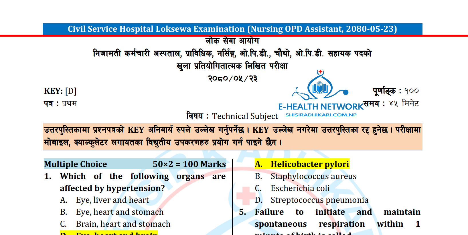 Karnali Province Staff Nurse Loksewa Solution (2079-02-27)