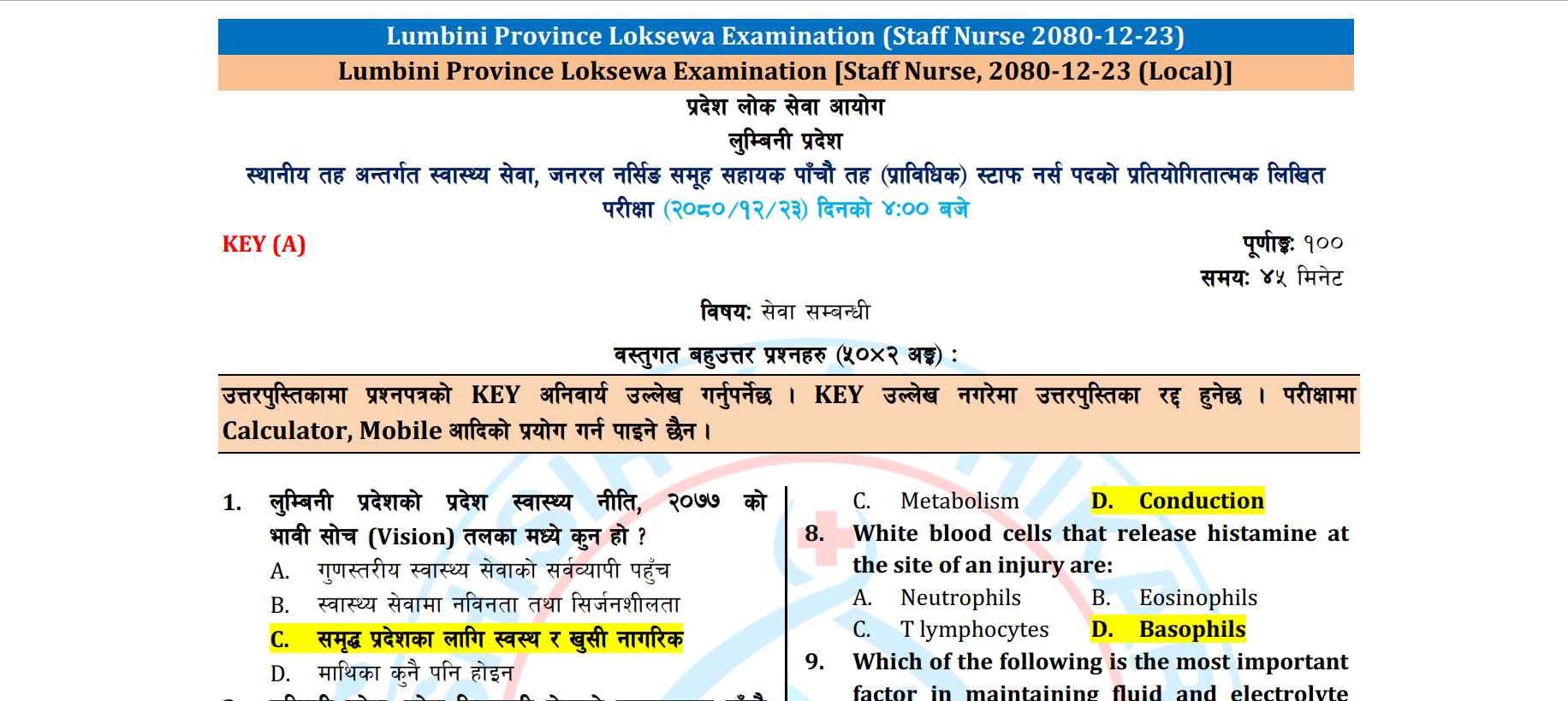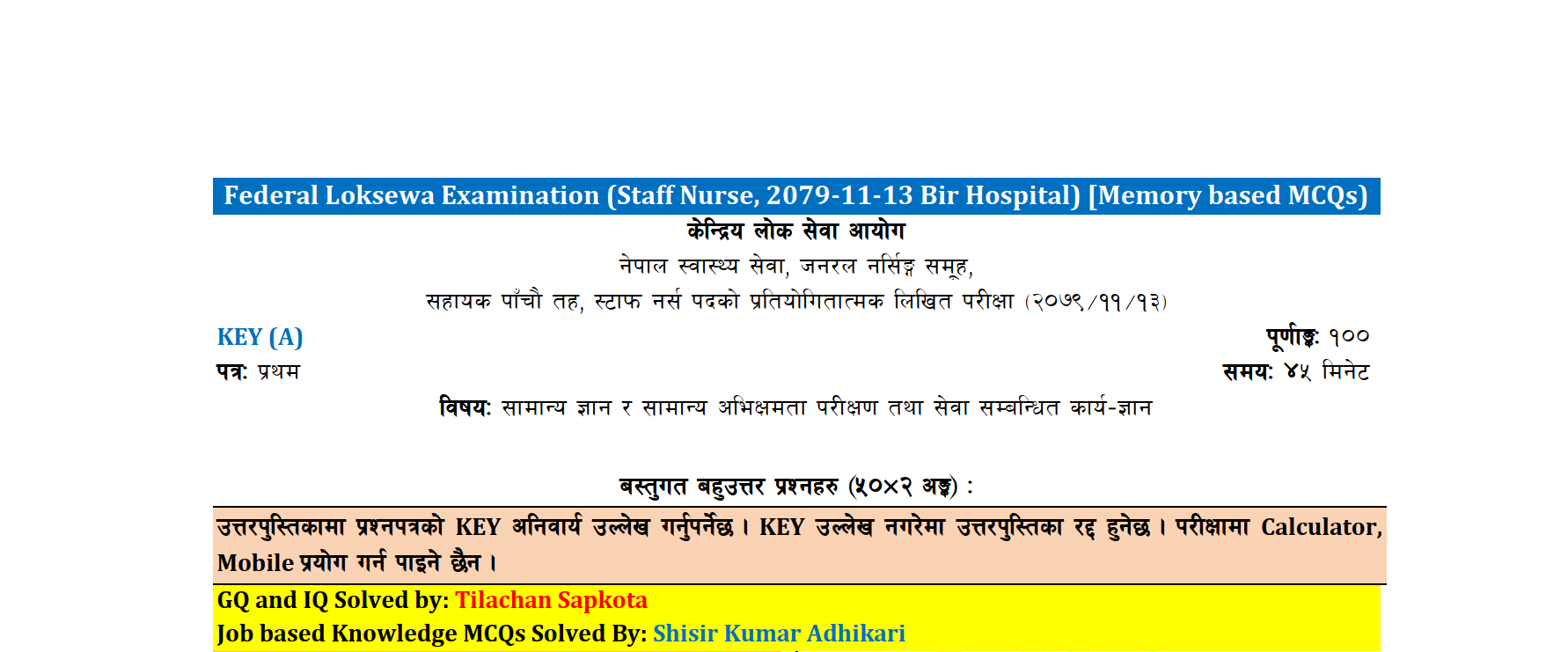 Federal Loksewa || Staff Nurse Solutions (2081-02-12)