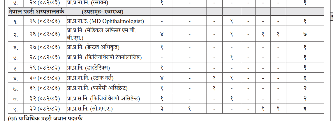 नेपाल प्रहरीको CMA, Staff Nurse, Pharmacy Assistant, Medical Officer, MD Ophthalmologist लगायतका स्वास्थ्का विभिन्न पद र प्रहरी जवान पदमा ठूलो संख्यामा विज्ञापन