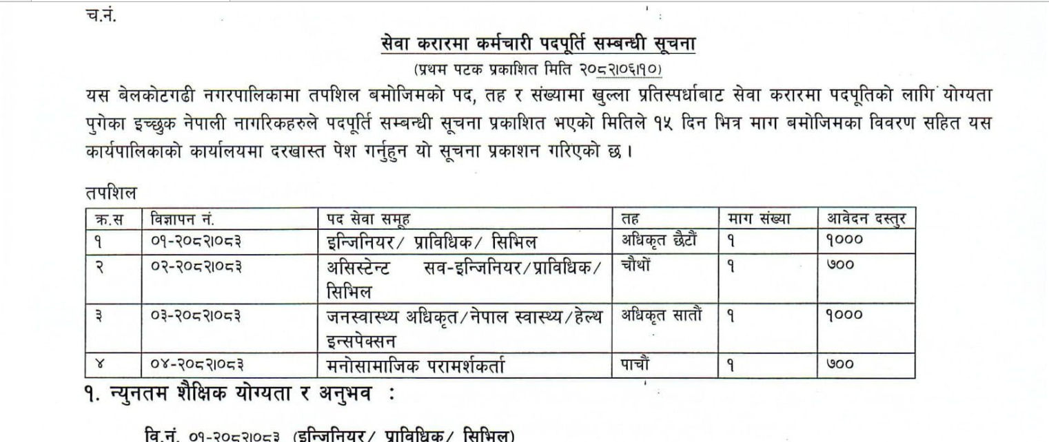 बेलकोटगढी नगरपालिकामा जनस्वास्थ्य अधिकृत लगायतका पदमा विज्ञापन