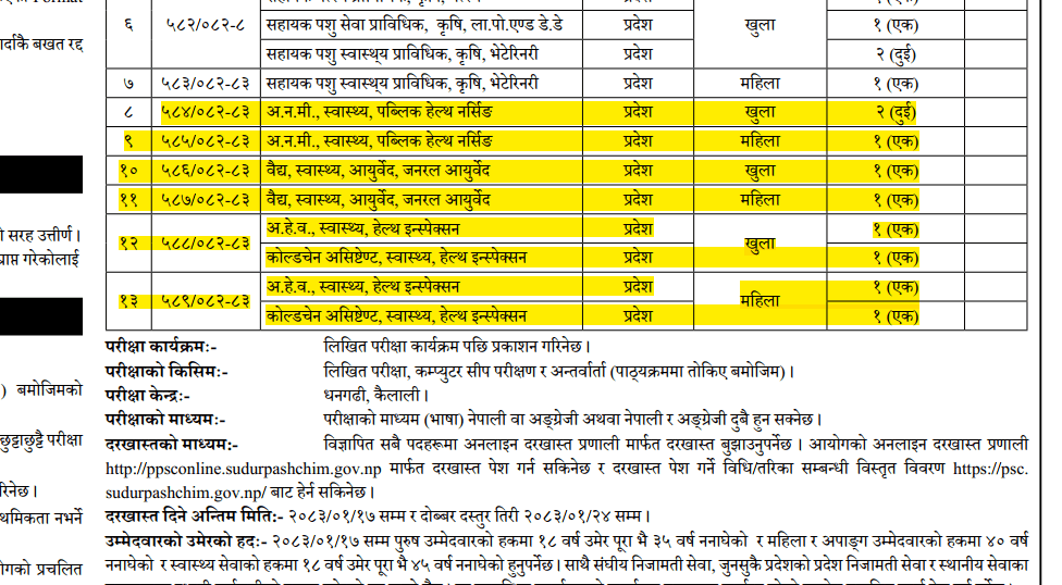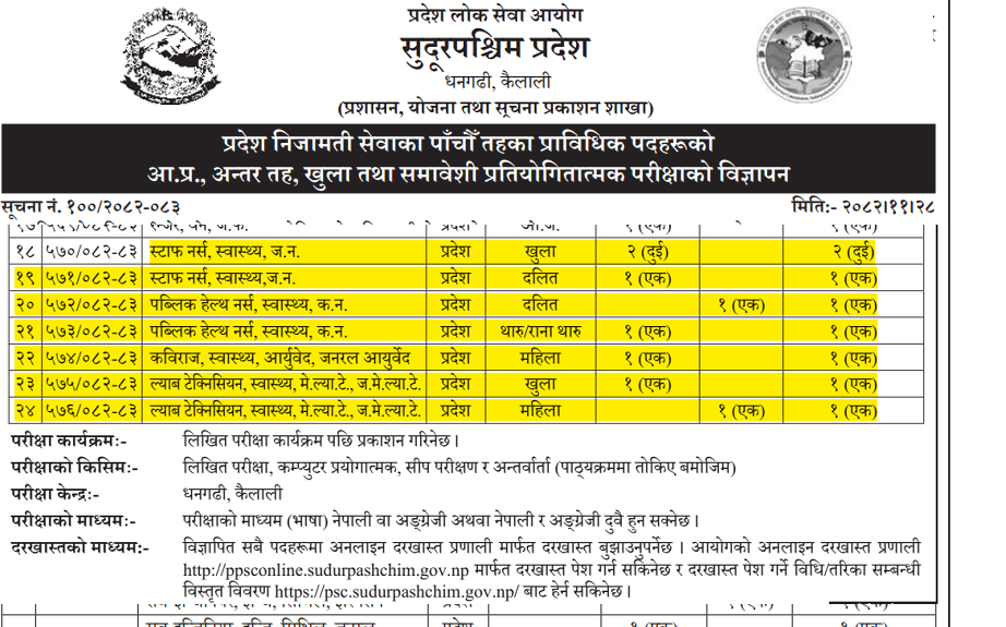 सु.प. लोक सेवा आयोगको प्रदेश स्वास्थ्य सेवा लगायतका विभिन्न सेवाको चौथो तहको विज्ञापन