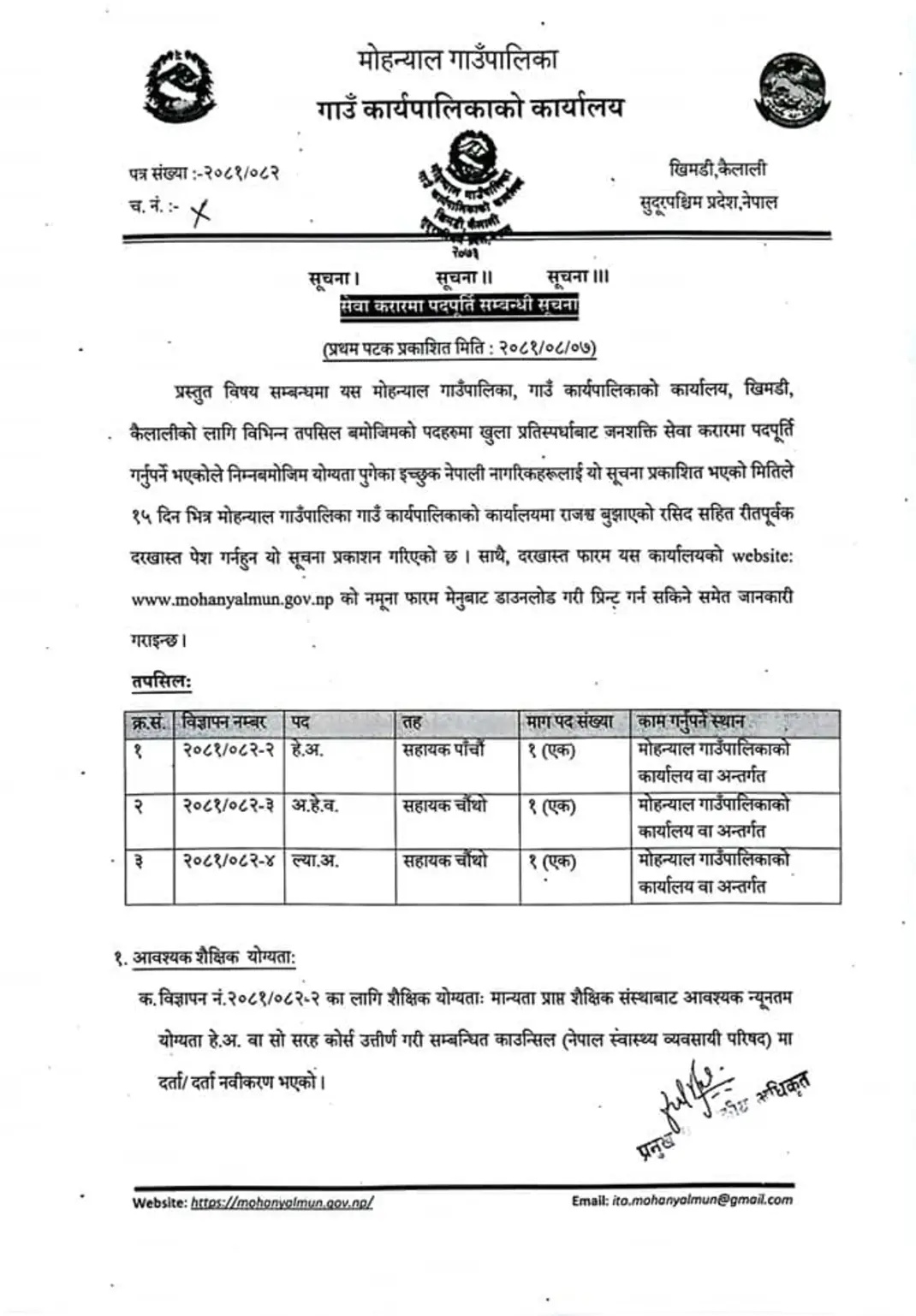 Vacancy for AHW/HA/LA at Mohanyal Rural Municipality