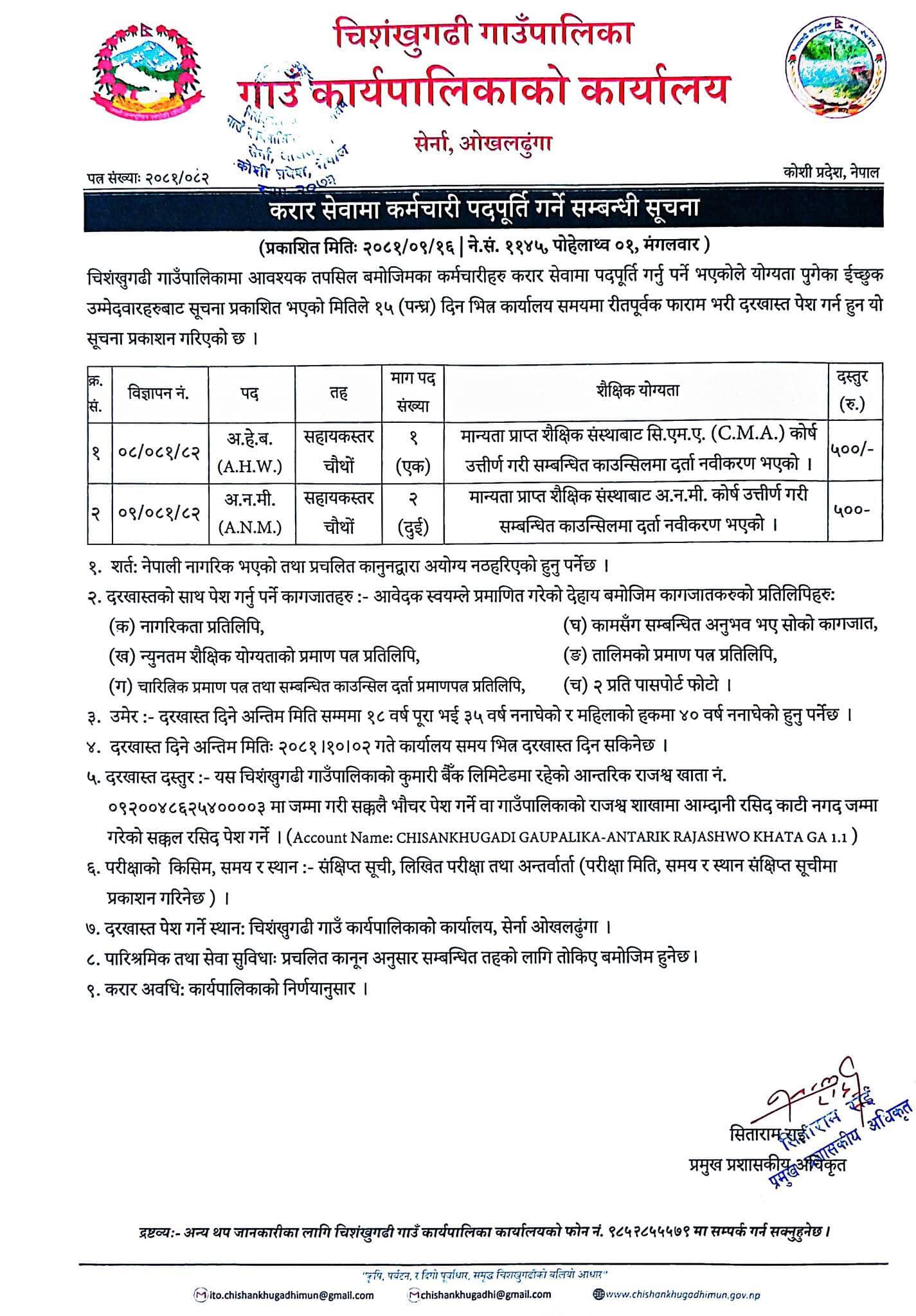 चिशंखुगढी गाउँपालिकामा अे.ह.व., अ.न.मी. आवश्यकता सम्बन्धी सूचना