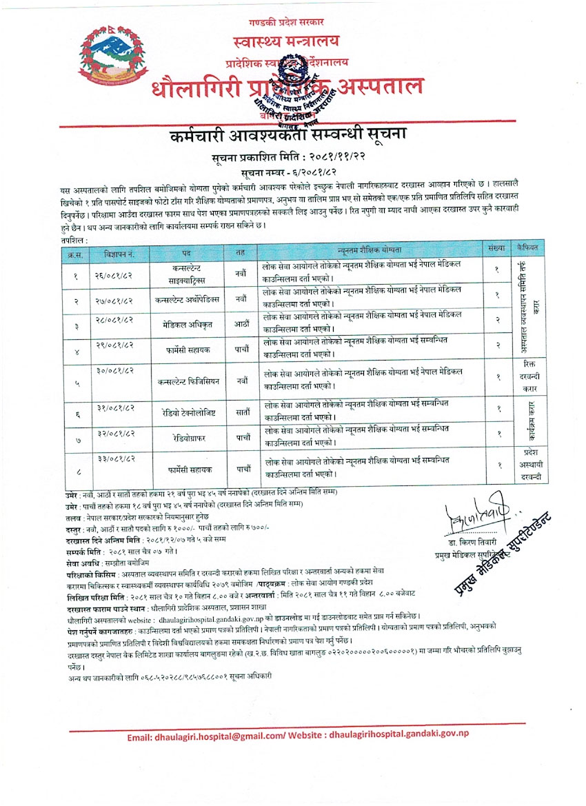 धौलागिरी प्रादेशिक अस्पतालमा कर्मचारी आवश्यकता सम्बन्धी सूचना