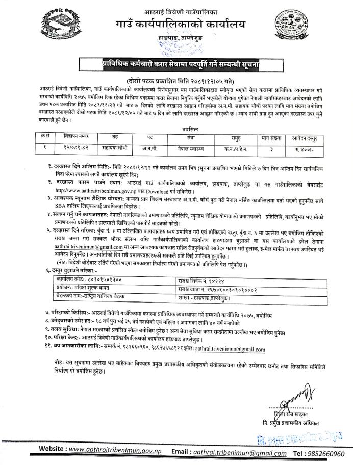 आठराई त्रिवेणी गाउँपालिका ताप्लेजुङमा अ.न.मी. आवश्यकता