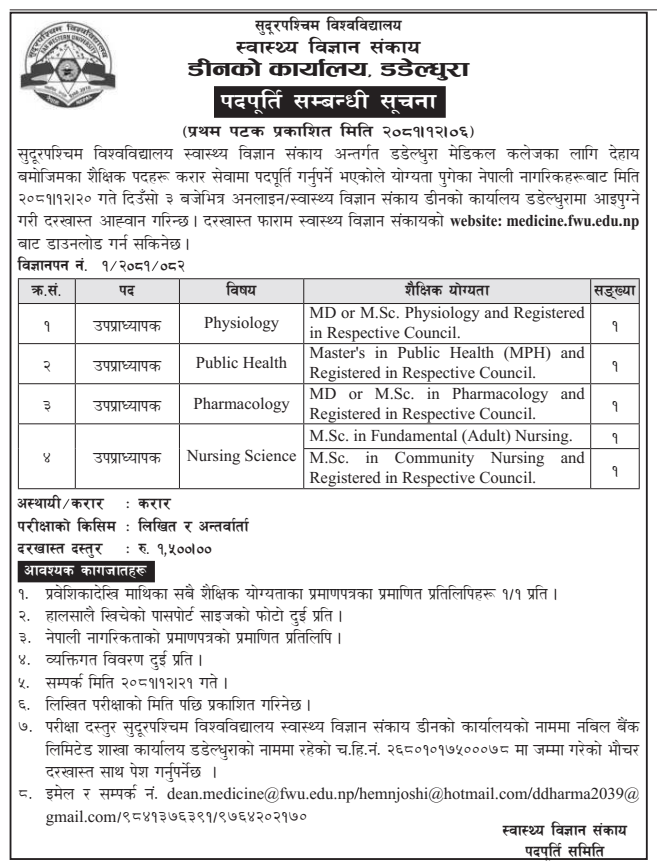 सु.प. विश्वविद्यालयमा उपप्रध्यापक आवश्यकता सम्बन्धी सूचना