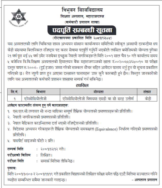 VACANCY ANNOUNCEMENT AT TU SERVICE COMMISSION