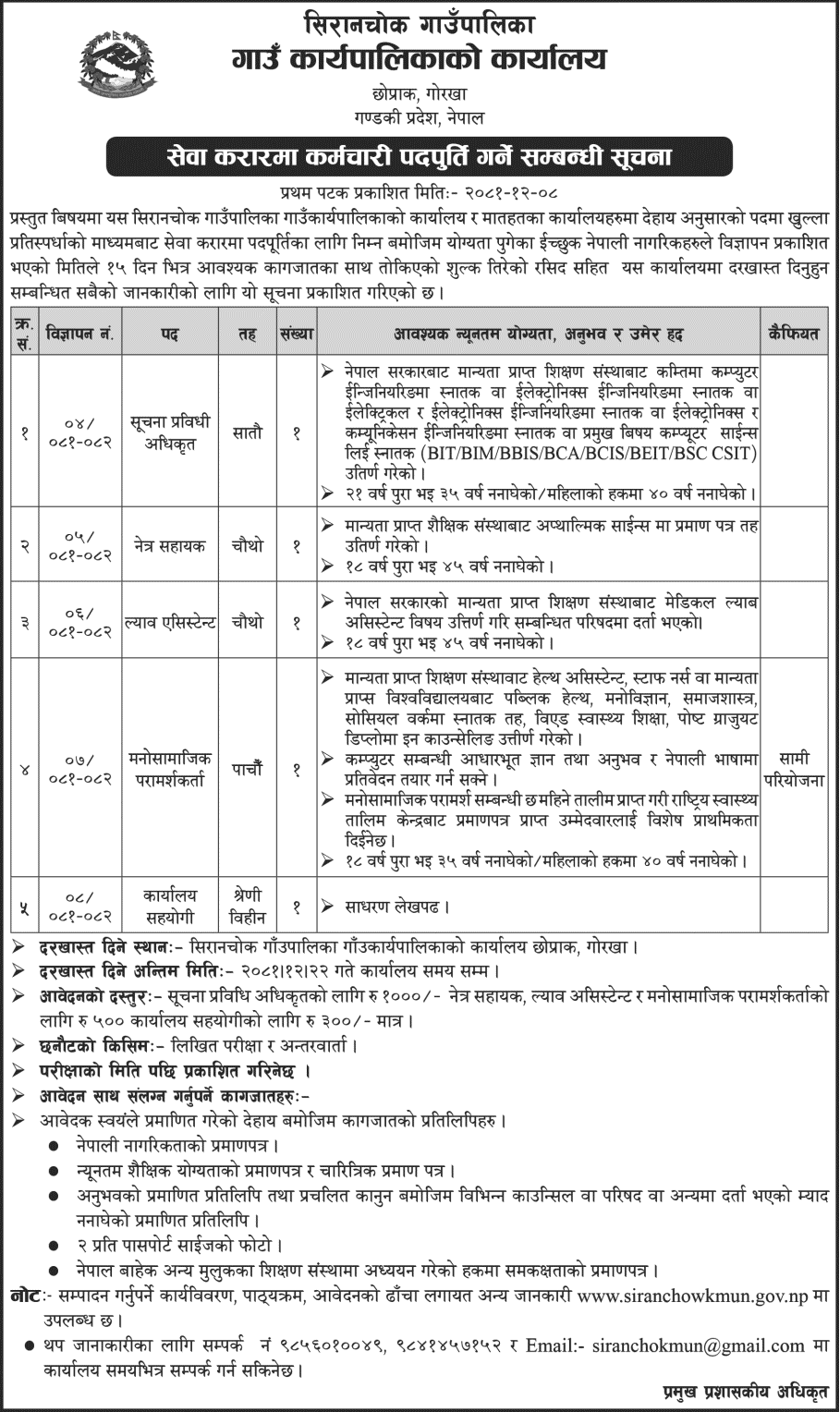 Siranchowk Rural Municipality Vacancy for Various Positions