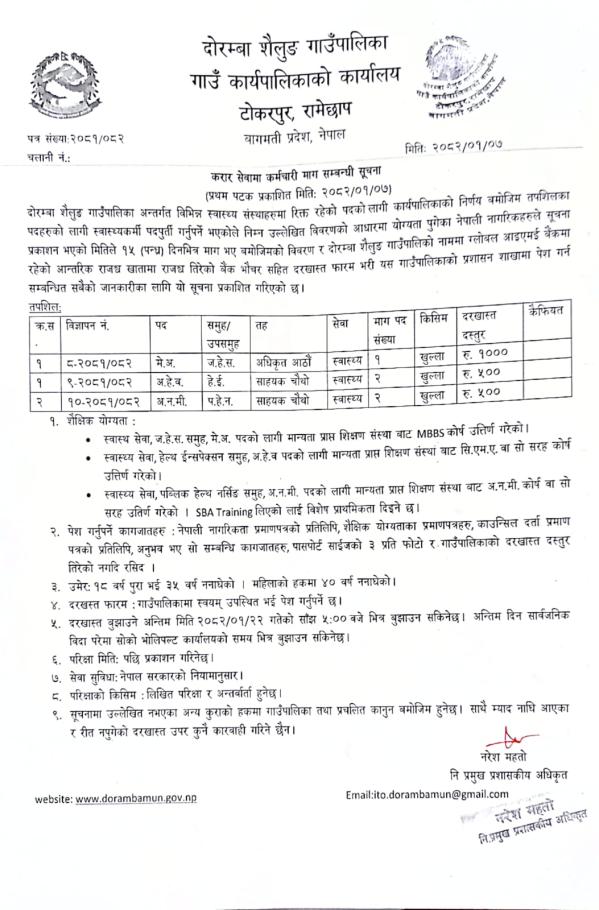 दोरम्बा शैलुङ गाउँपालिकामा कर्मचारी आवव्श्यकता सम्बन्धी सूचना