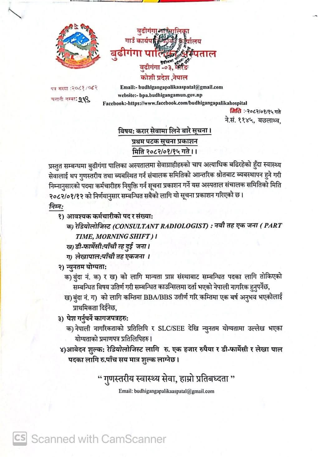 Budhiganga Rural Municipality Vacancy for Various Positions