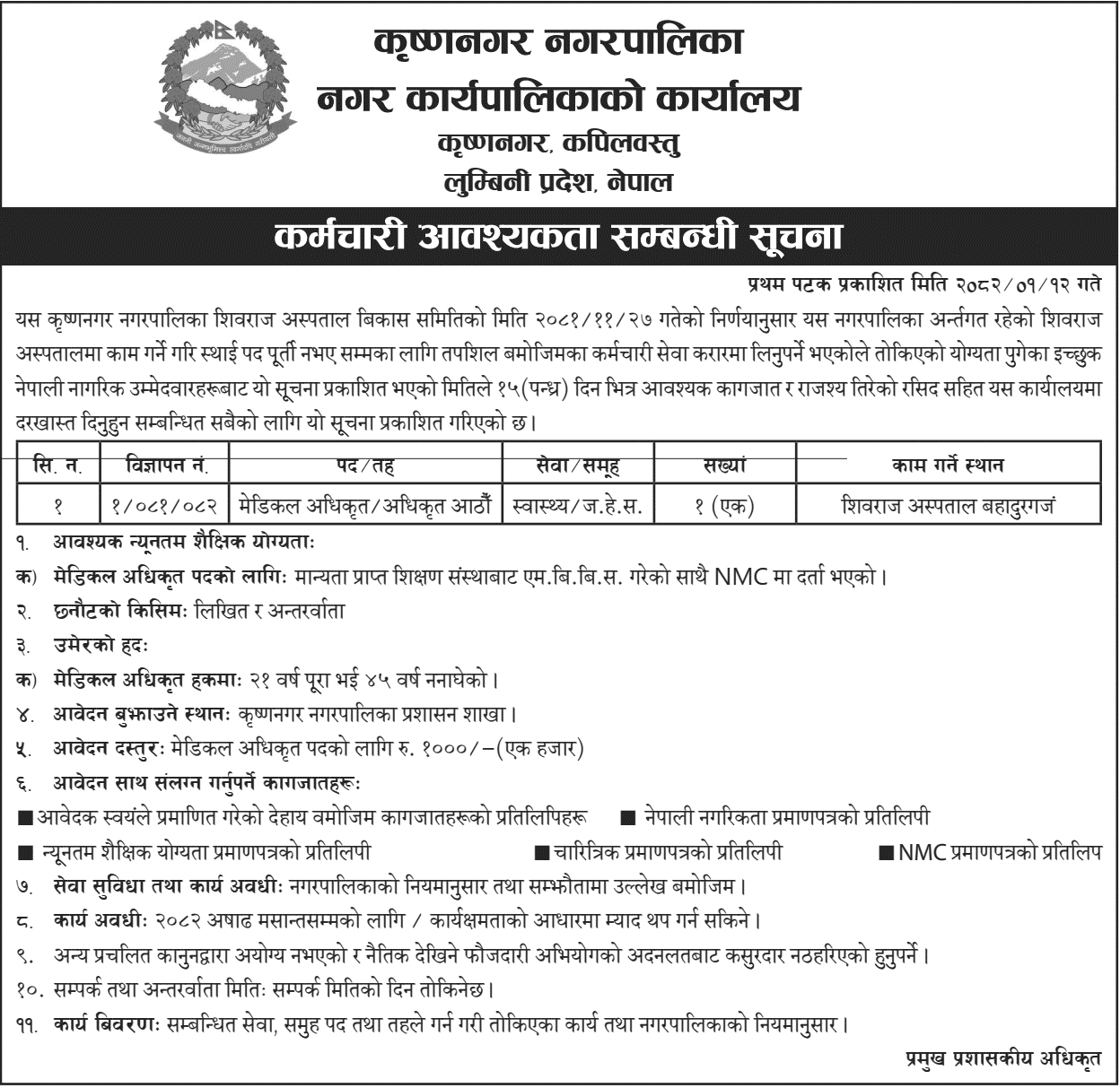 Federal and Provincial Routine of Health (Technical) Loksewa Vacancy