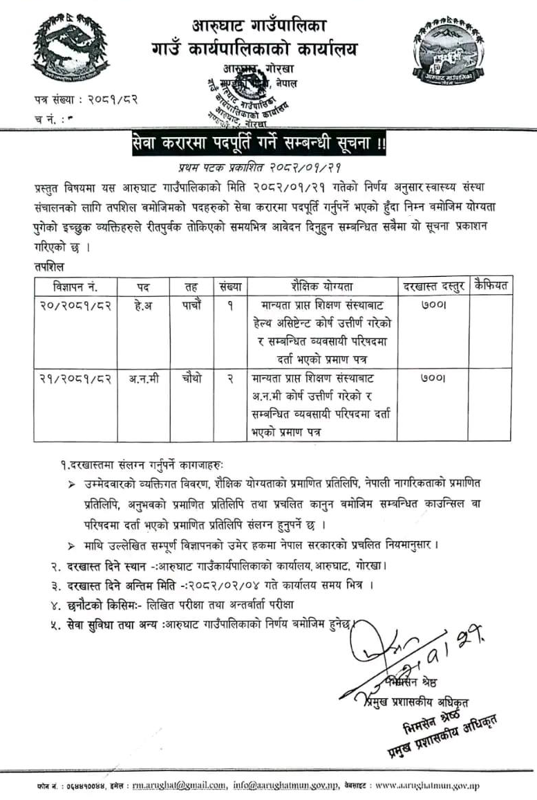 Aarughat Gaunpalika, Gorkha Vacancy for Various Positions