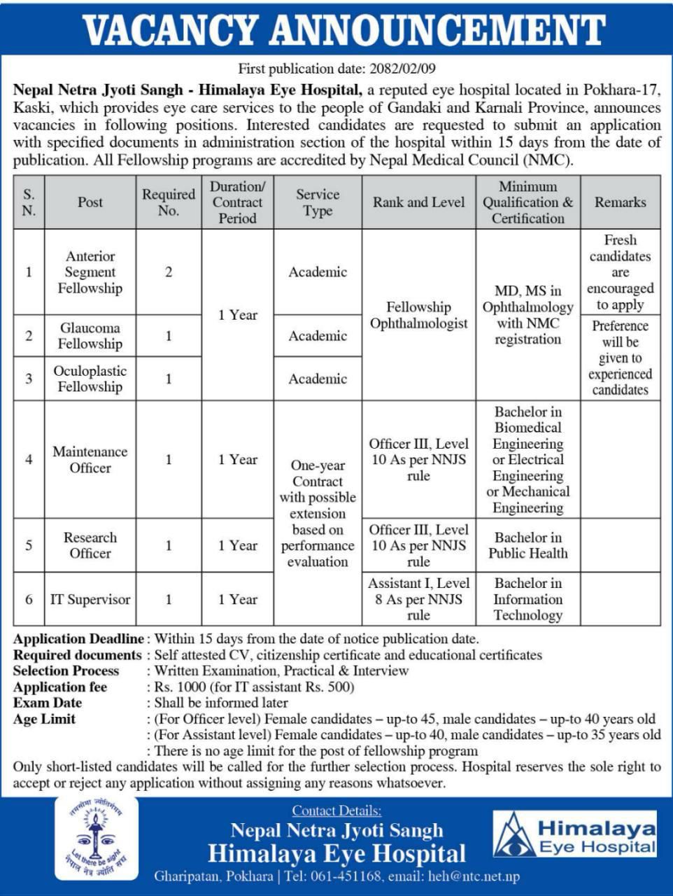 Himalaya Eye Hospital Vacancy for Various Posts