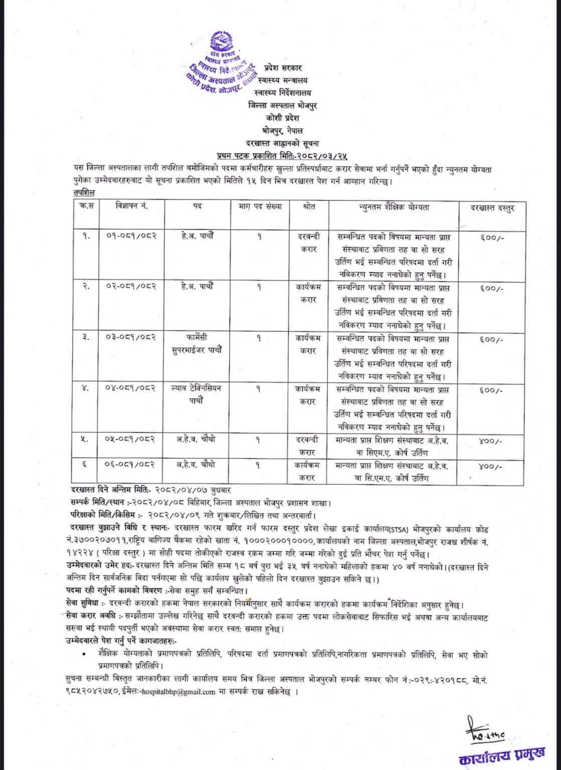 जिल्ला अस्पताल भोजपुरमा कर्मचारी आवश्यकता सम्बन्धी सूचना
