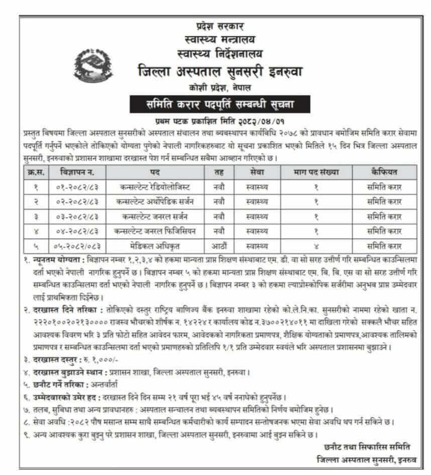 जिल्ला अस्पताल सुनसरी इनरुवामा कर्मचारी आवश्यकता