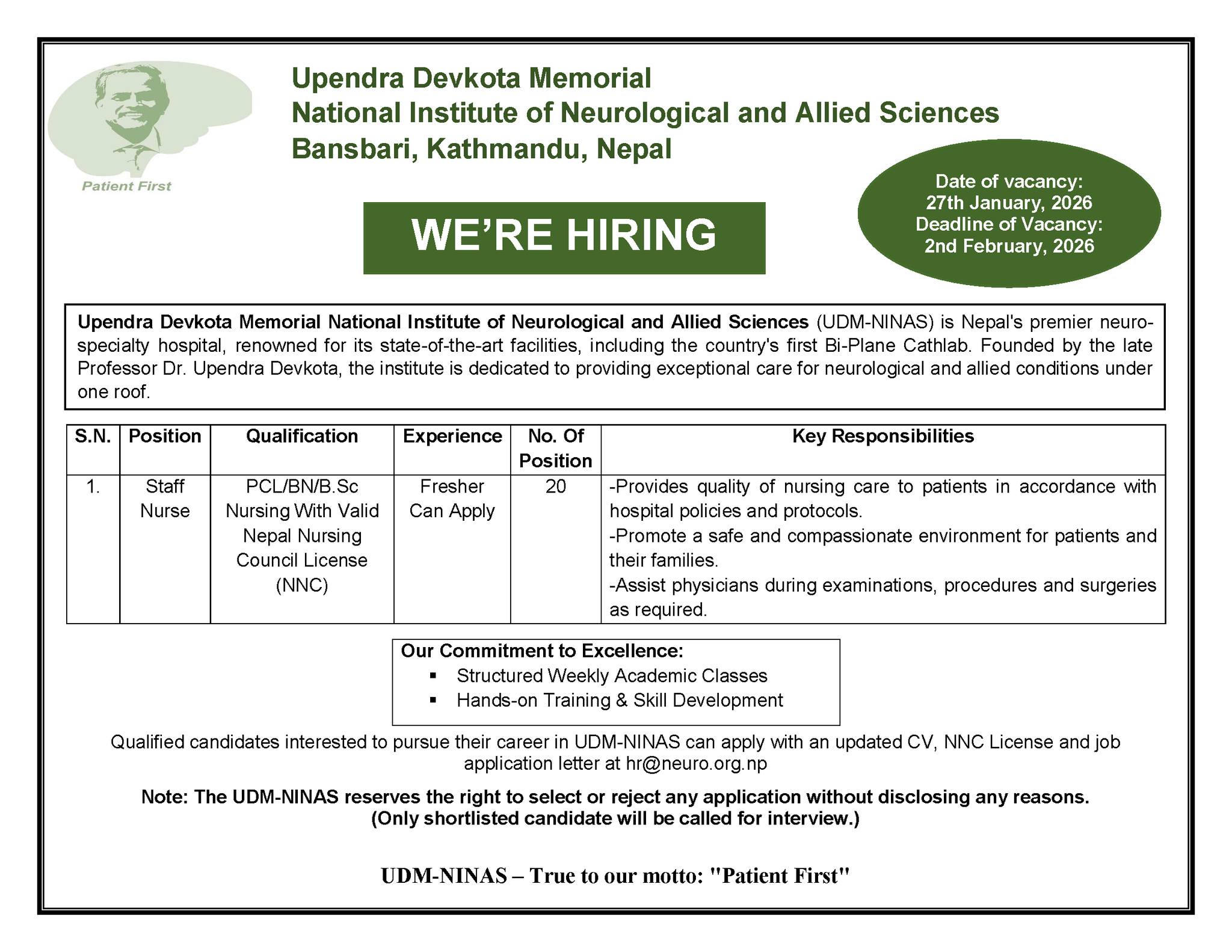Interested candidates may send their updated CV, NNC License, and application letter to hr@neuro.org.np