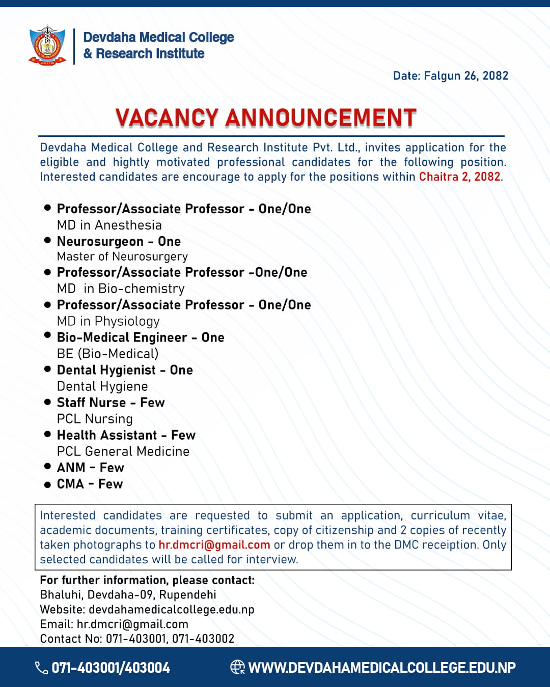 Federal and Provincial Routine of Health (Technical) Loksewa Vacancy