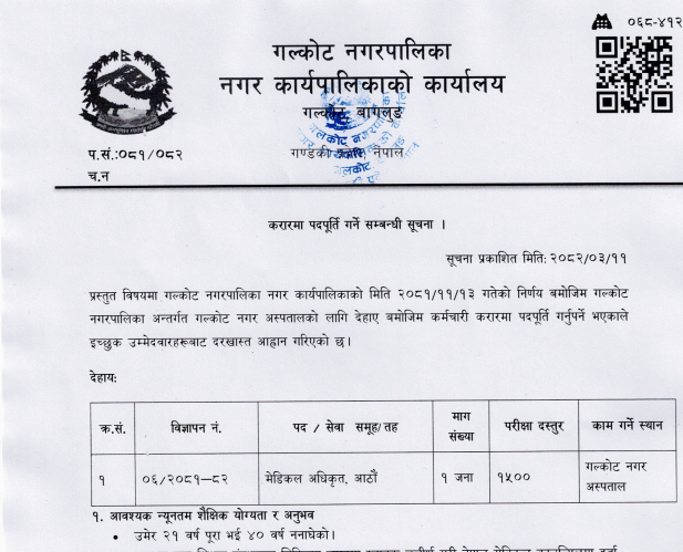 Galkot Municipality Vacancy for Medical Officer