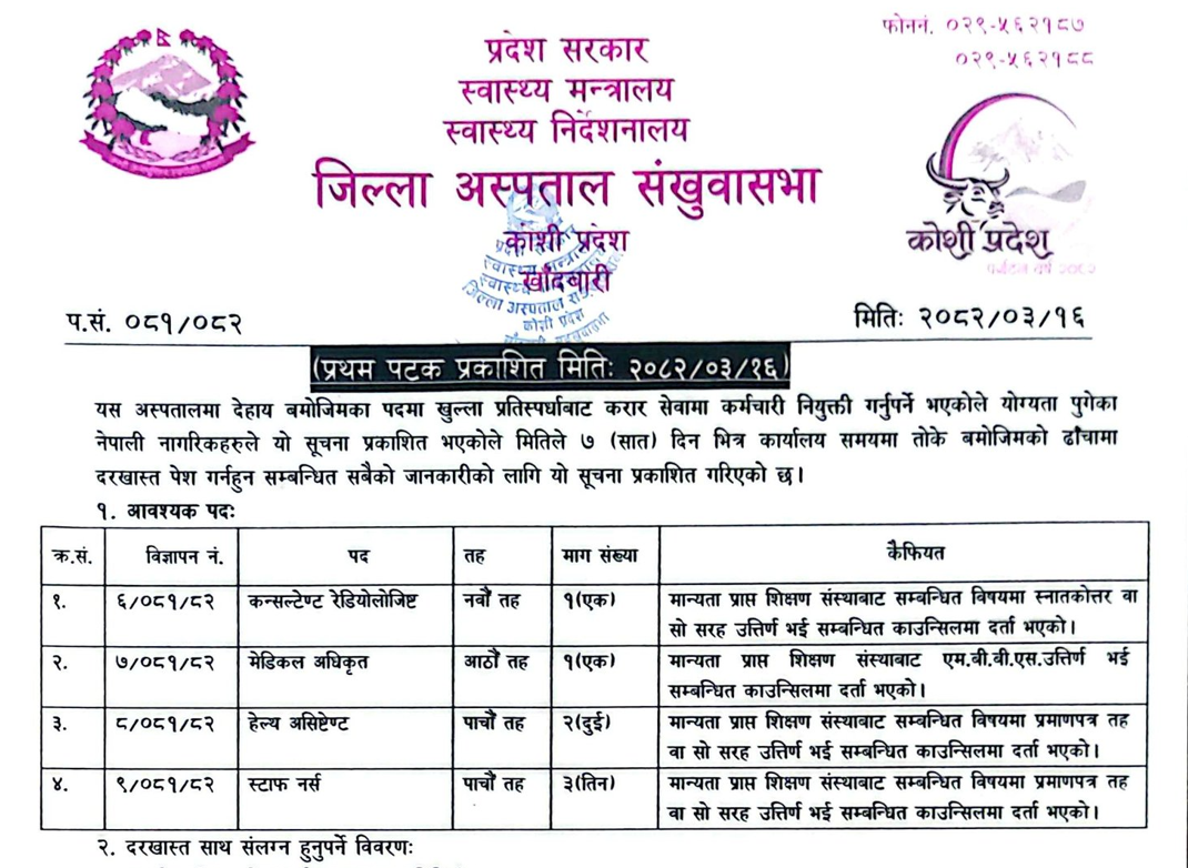संखुवासभा अस्पतालमा कर्मचारी आवश्यकता सम्बन्धी सूचना
