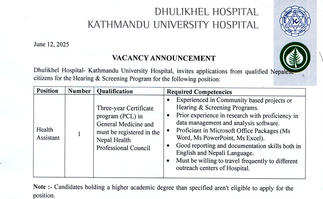 Dhulikhel Hospital Vacancies For The Post of Health Assistant (HA)