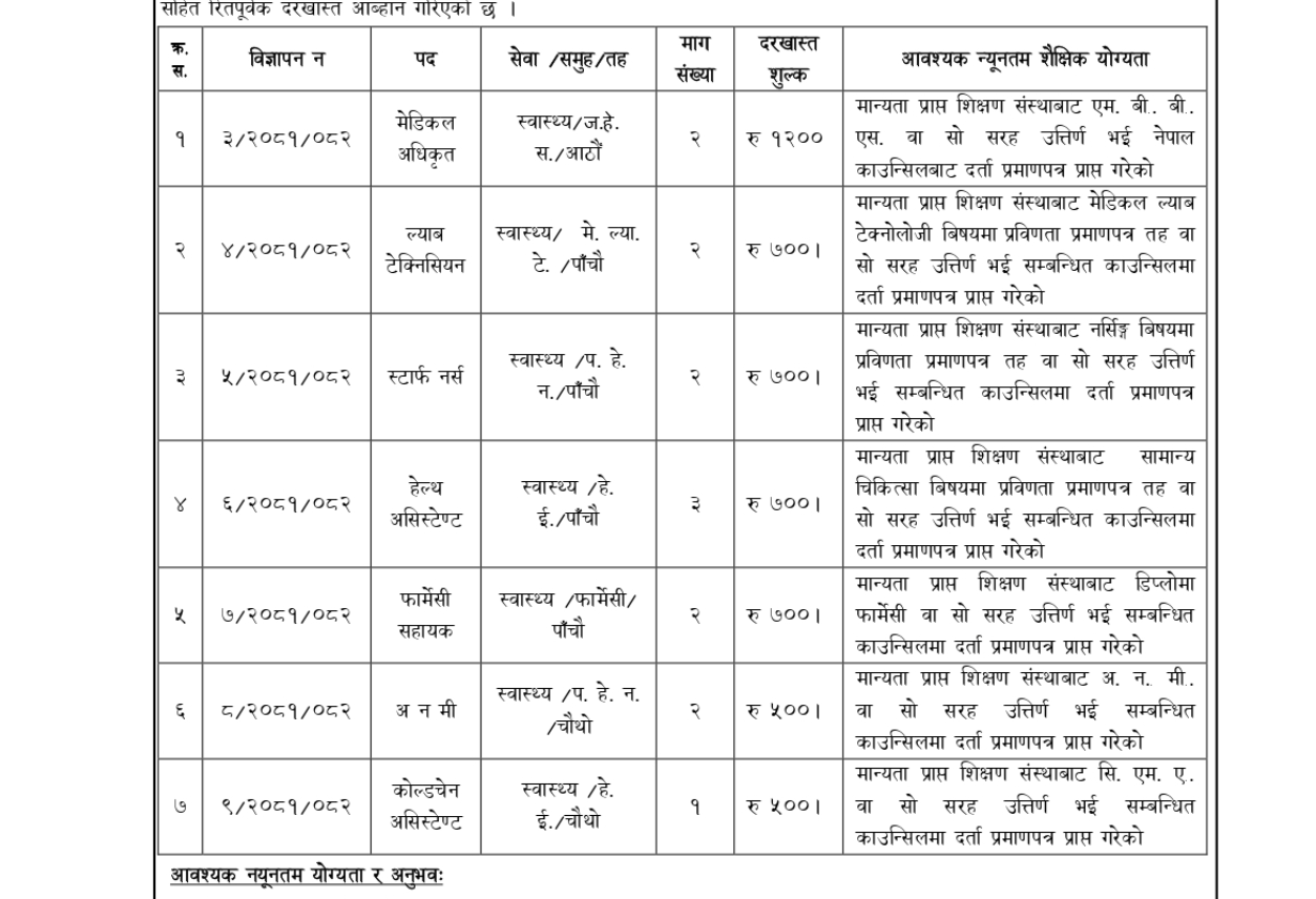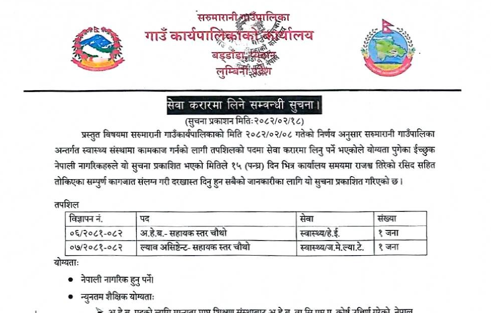 सरुमारानी गाउँपालिकामा स्वास्थ्यकर्मी आवश्यकता सम्बन्धी सूचना