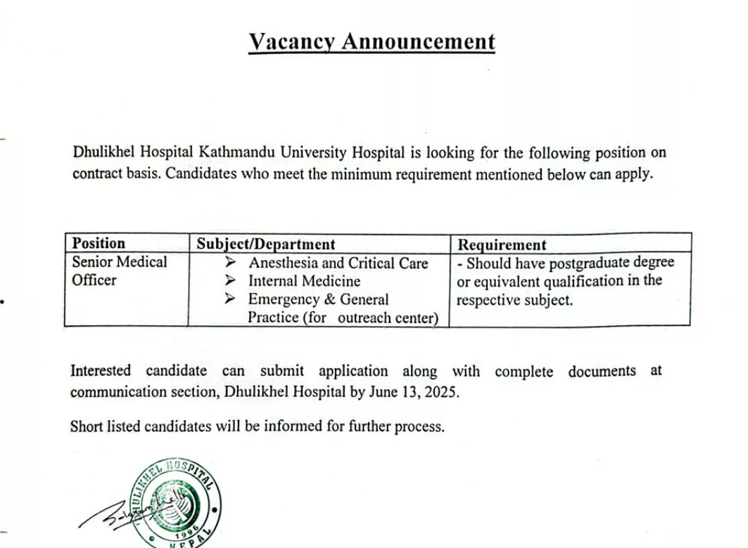 Dhulikhel Hospital Vacancies for the Post of Senior Medical Officer