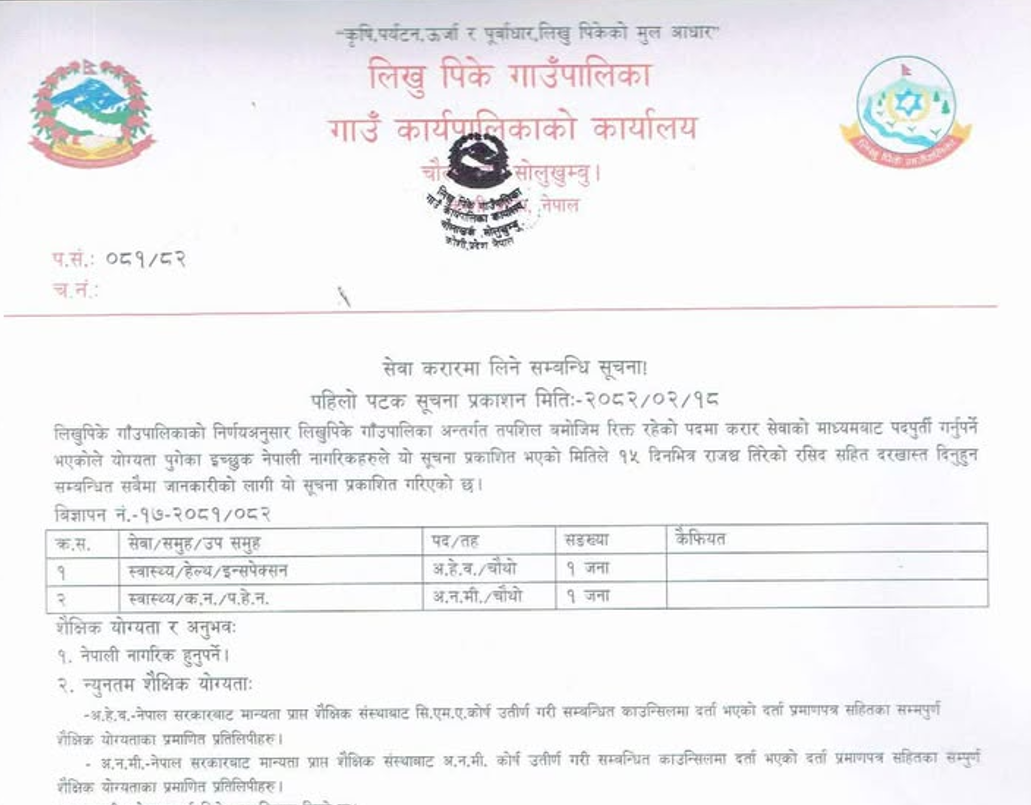 लिखु पिके गाउँपालिका अ.हे.व., अ.न.मी. आवश्यकता सम्बन्धी सूचना