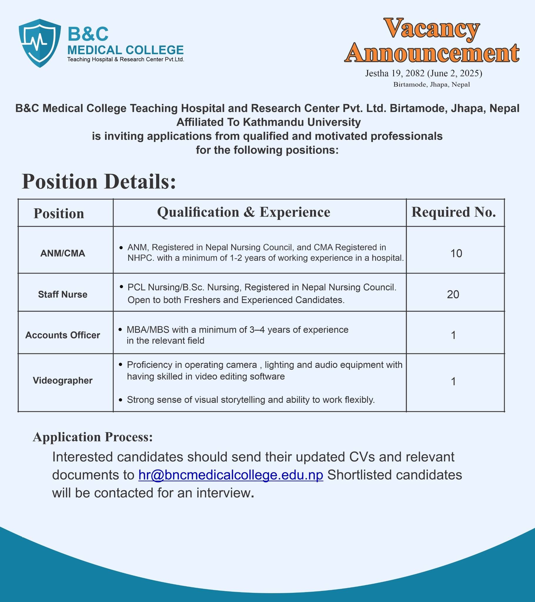 B & C Medical College Teaching Hospital Vacancies for Various Posts