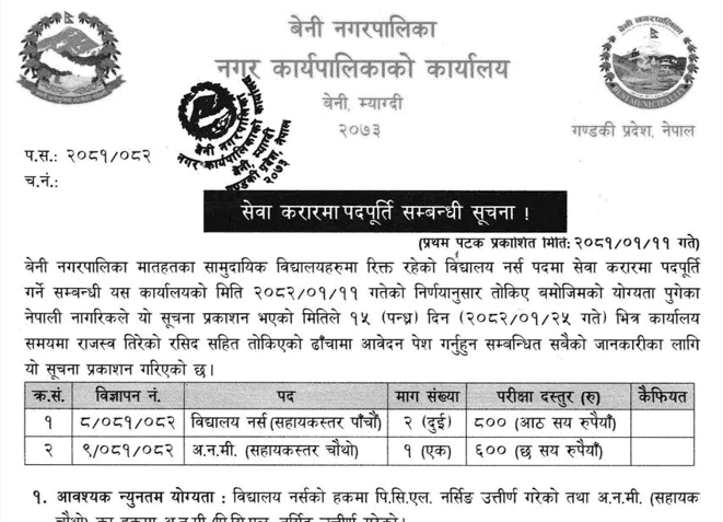 म्यागङ गाउँपालिकामा कर्मचारी आवश्यकता सम्बन्धी सूचना