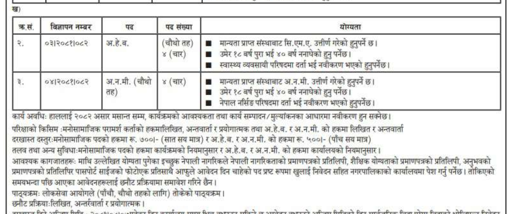 Buddhabhumi Municipality Vacancy For Psychosocial Counselor, ANM, AHW