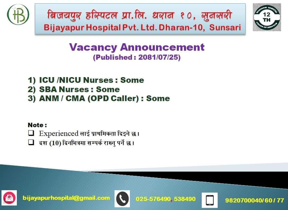 Vacancy Announcement At Bijayapur Hospital Dharan