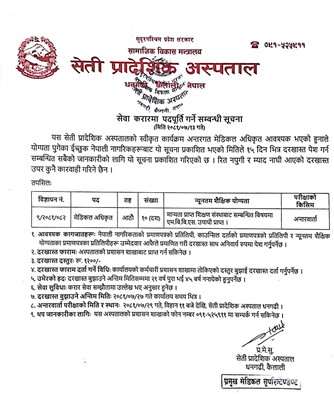 सेती प्रादेशिक अस्पतालले माग्याे १० जना मेडिकल अधिकृत