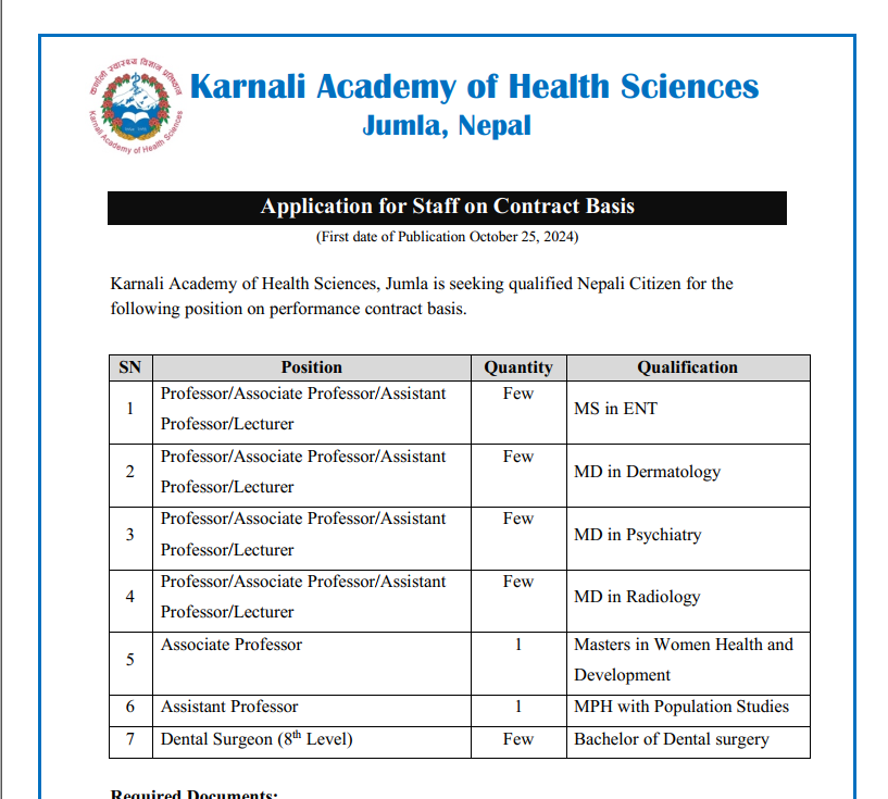 Application For Staff On Contract Basis At KAHS Jumla