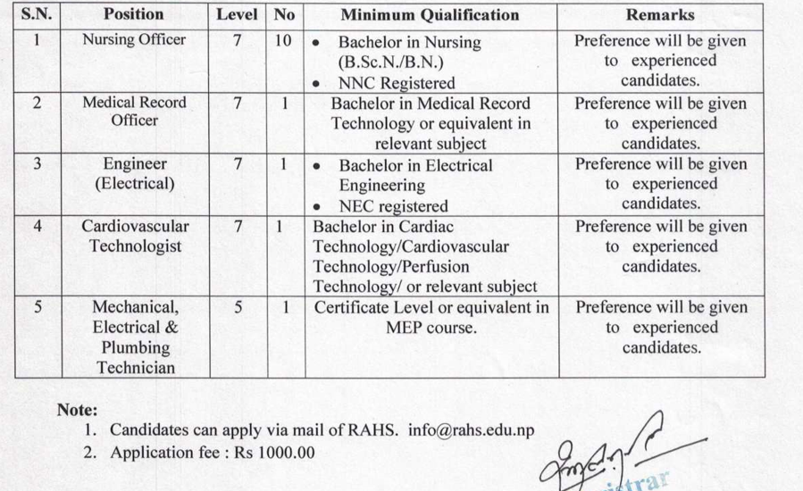 Vacancy Announcement for Various Posts Rapti Academy of Health Sciences, Dang, Nepal