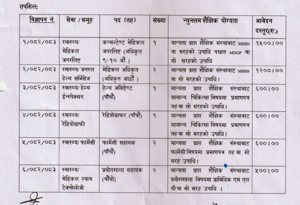 Federal and Provincial Routine of Health (Technical) Loksewa Vacancy